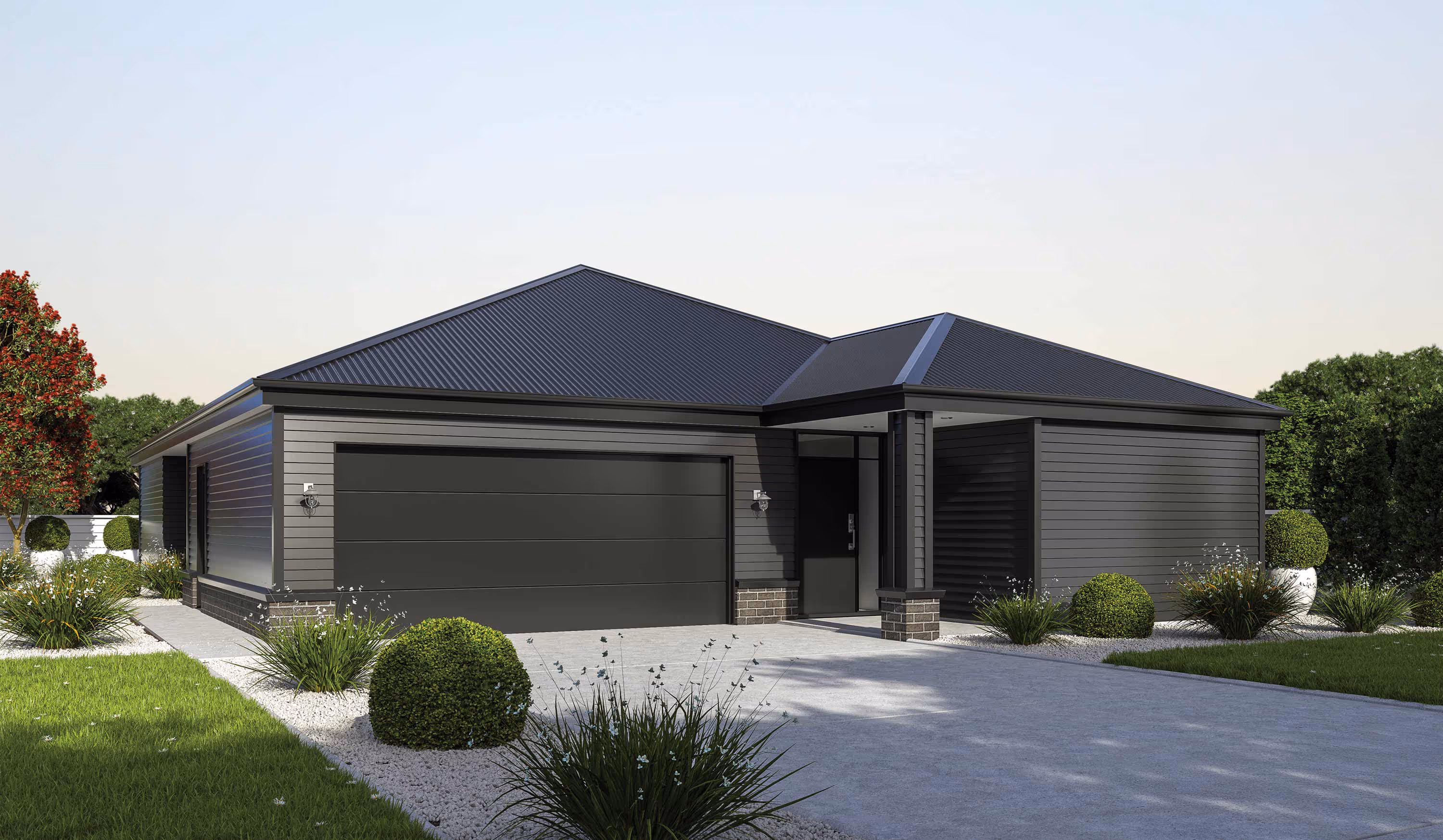 The open plan living inside this home is offset, so the lounge is slightly privatised from the kitchen and dining. The master is positioned separately from the other rooms for increased privacy. The kitchen includes an open-style pantry that’s cleverly hidden. This home can easily have its style changed just by applying different colour weatherboards and brick, dark for modern, light for a more classic look.